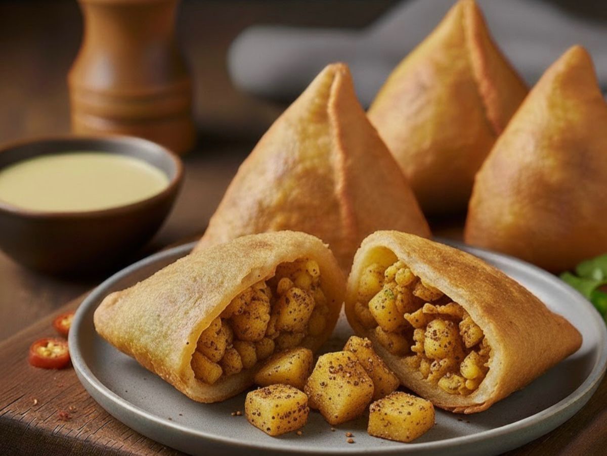A savory, deep-fried pastry pocket with a Masala filling.